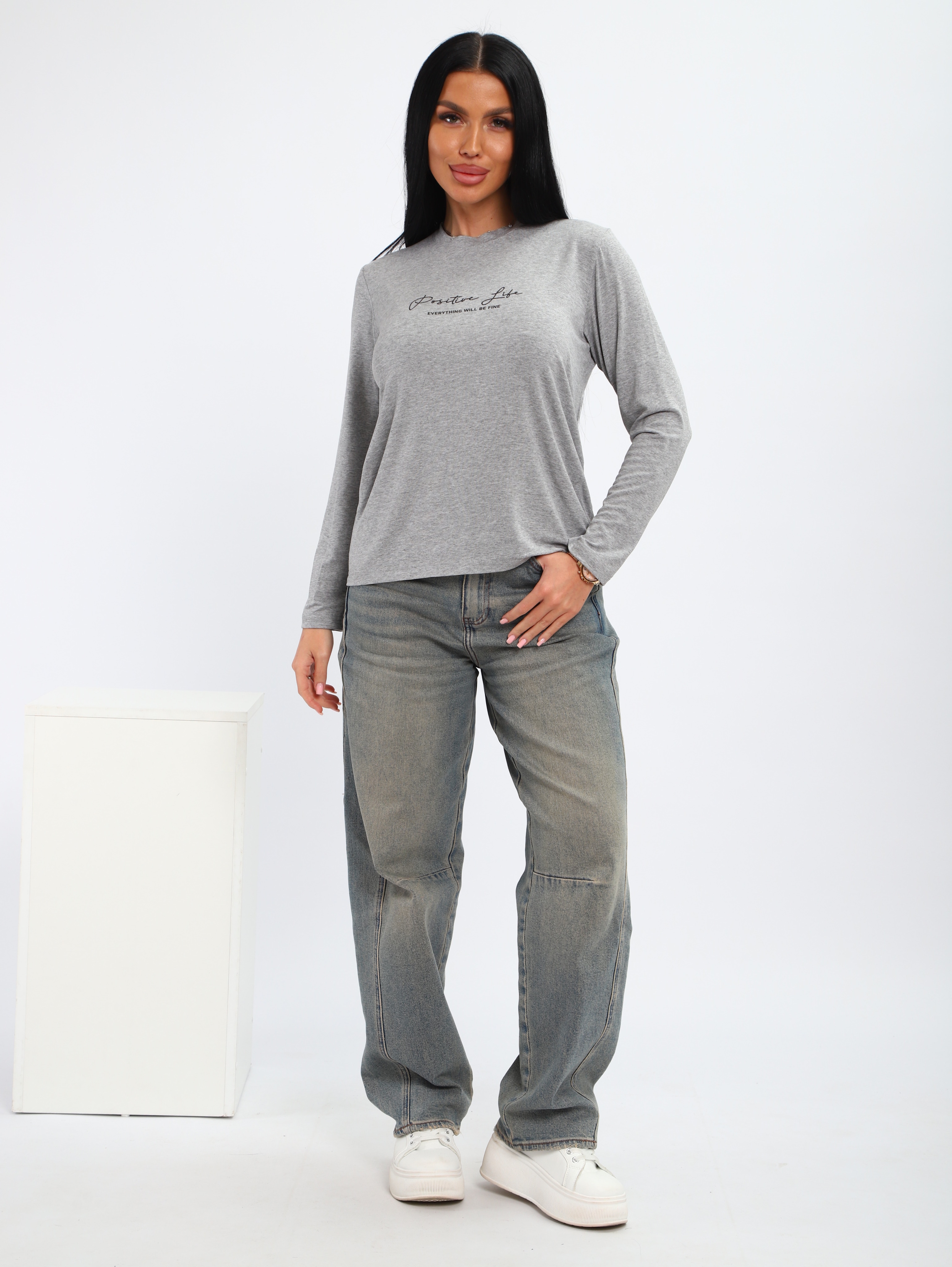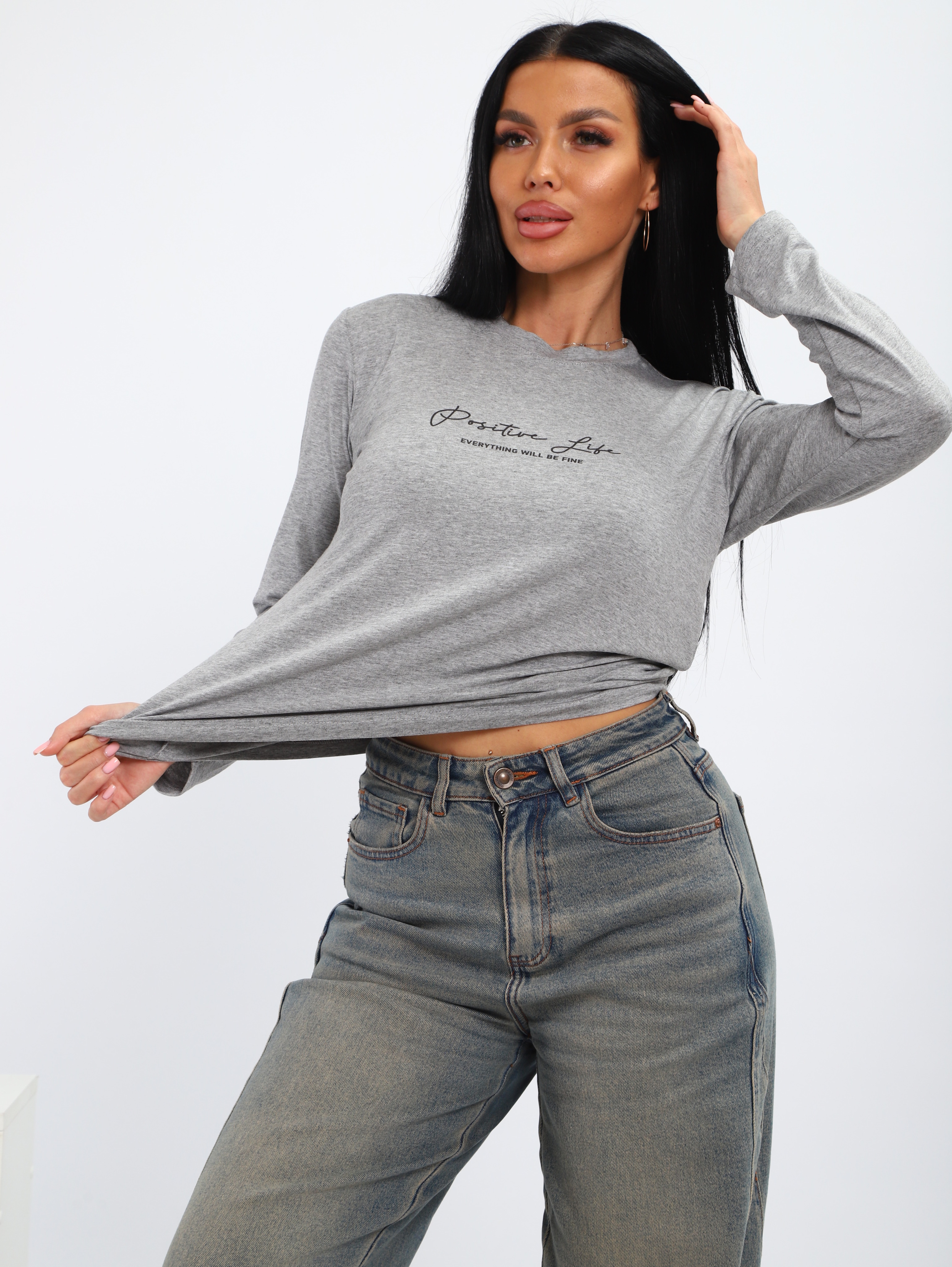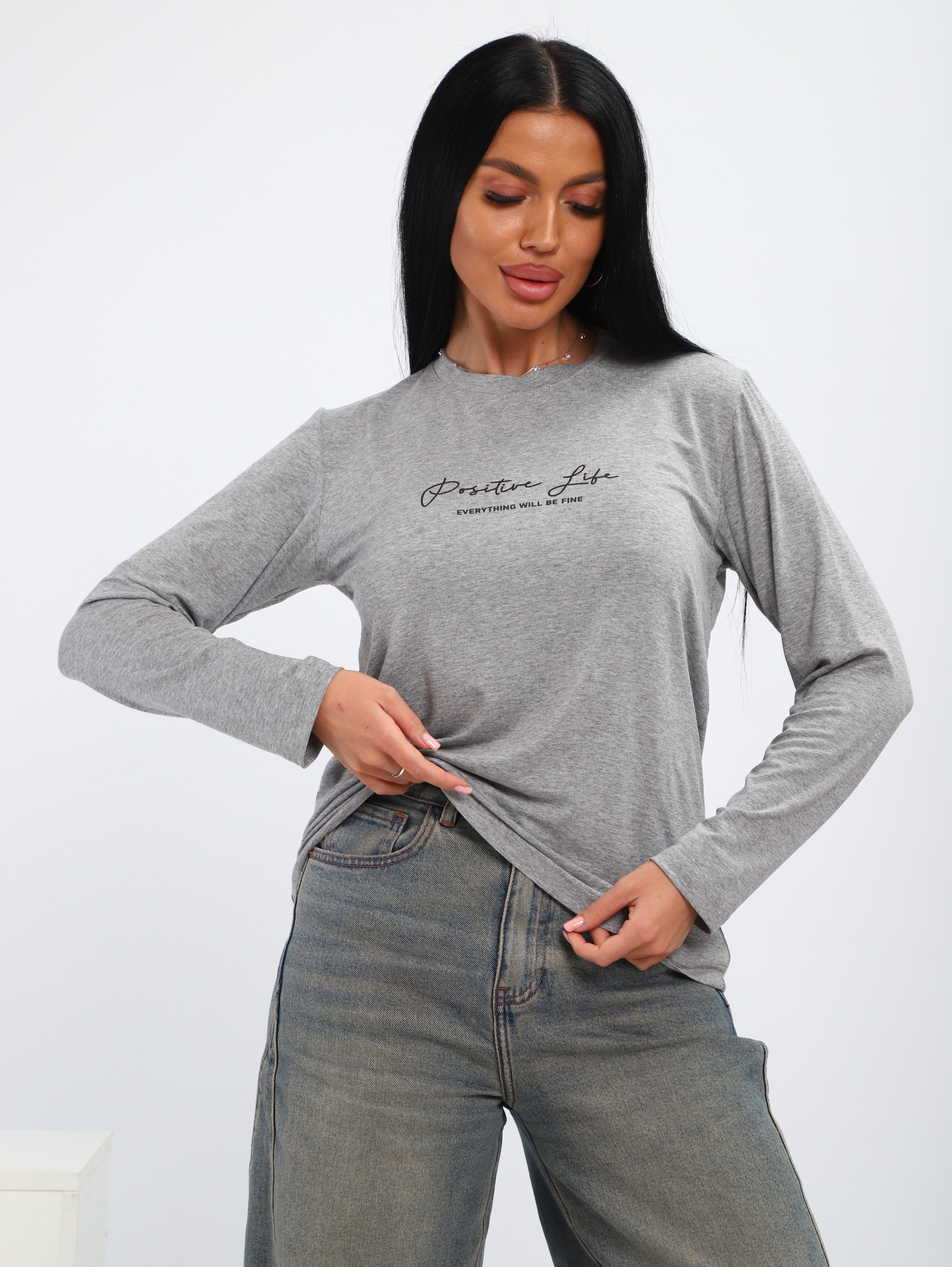 Лонгслив серый меланж
